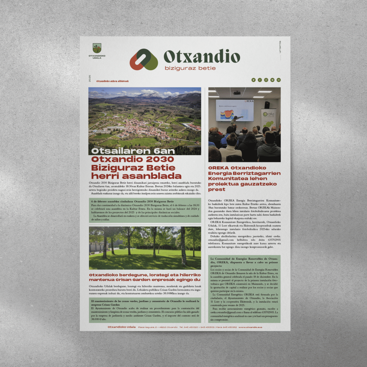 Biziguraz Betie’ lelopean, Otxandioko Udala lan berezia egiten ari da azkenaldi honetan informazioa helarazteko herritarrei eta komunikazio-zubiak eraikitzeko eta gu, AZKtik, laguntzen diegu asmo hori aurrera ateratzen. ‘Poltsa bete Otxandion’ tokiko dendetan erosketak egiteko sentsibilizazio kanpaina, buletin eta herri-aldizkarien diseinua, sare sozialen kudeaketa…egin beharreko lanak dira Otxandioko herritarrak ondo informatuta egon daitezen, herrigintza sendotu eta komunitatea indartzeko.